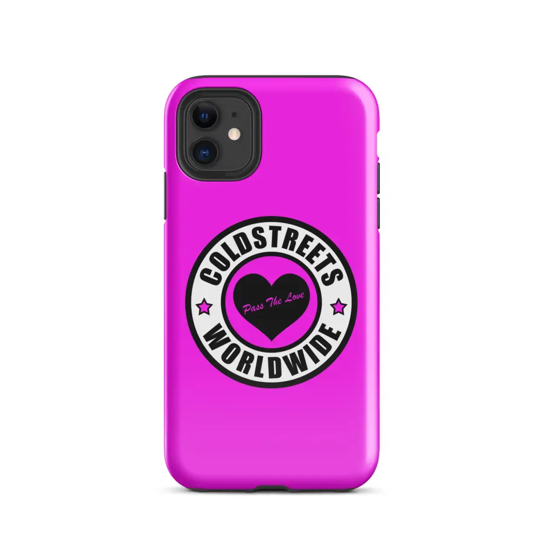 Hot pink iPhone case with Coldstreets Worldwide logo for Pro Max and Mini iPhones