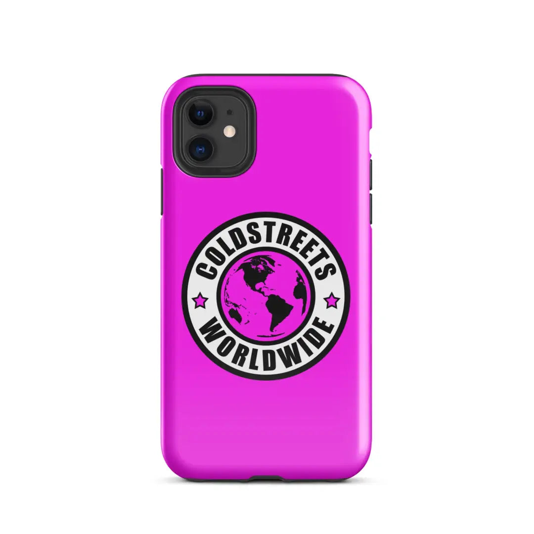 Hot pink iPhone case with Coldstreets Worldwide logo for Pro Max and Mini iPhones