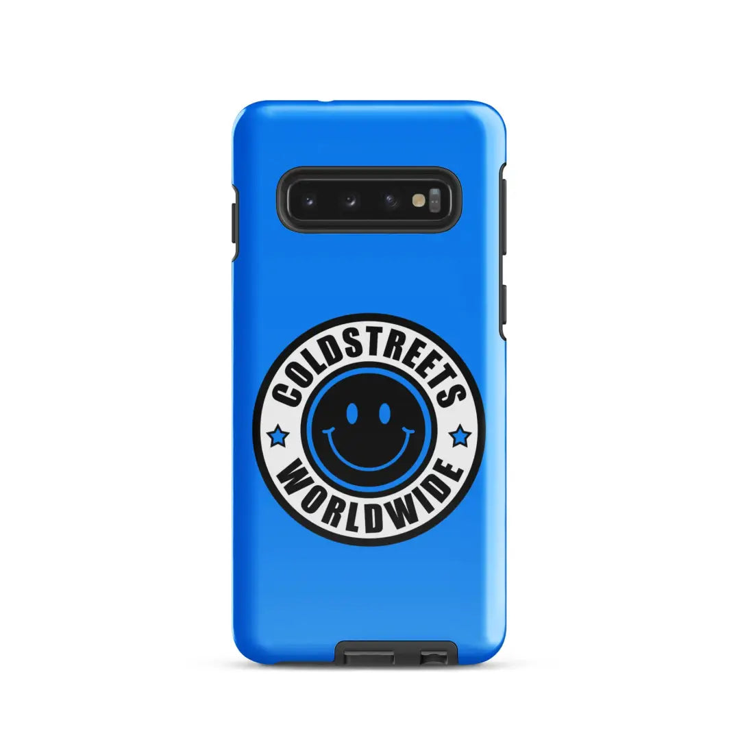 Blue phone case with smiley logo for Samsung Galaxy S20, S21, S22 by CS Clothing Co