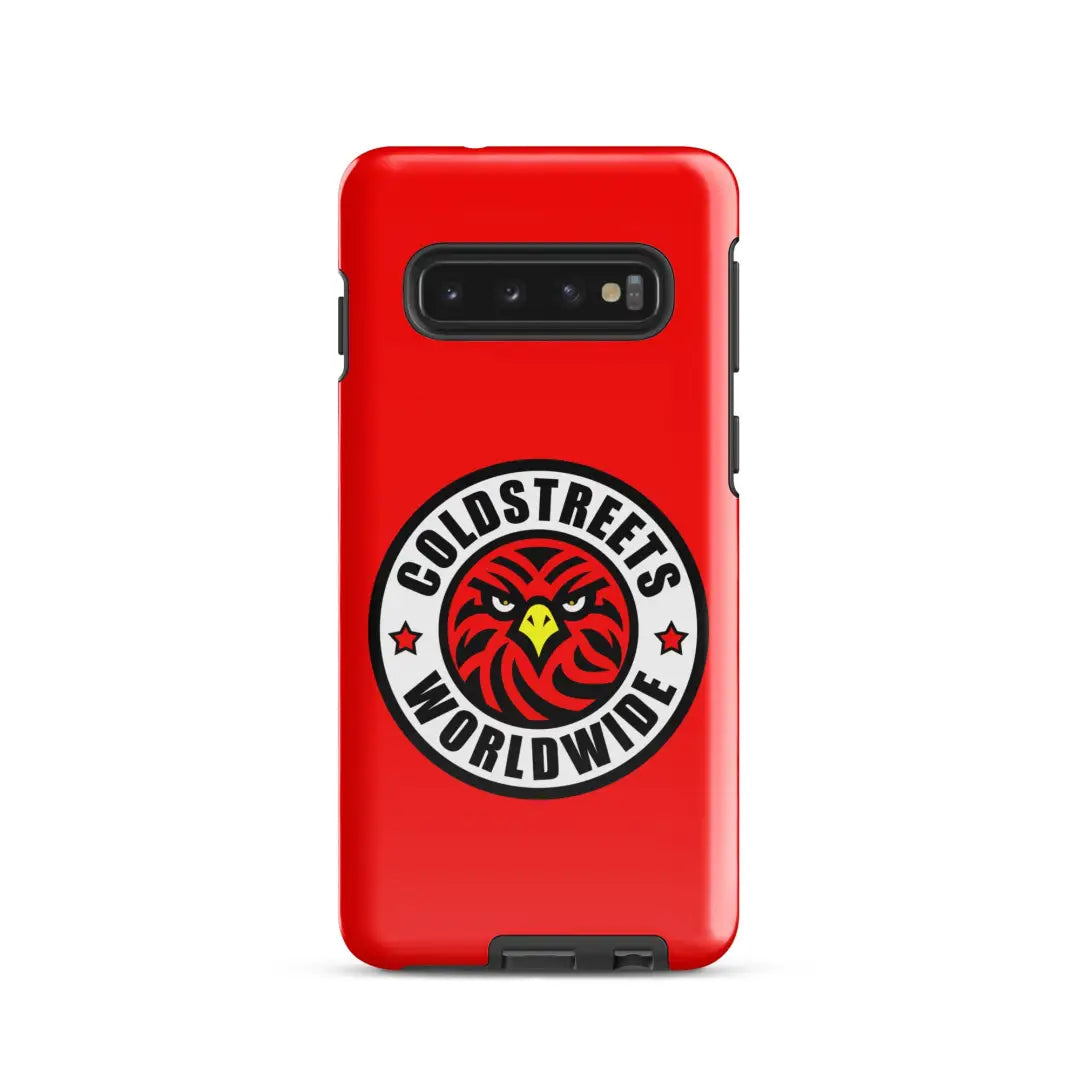 Red phone case for Samsung Galaxy S20, S21, S22 with Coldstreets Worldwide eagle logo