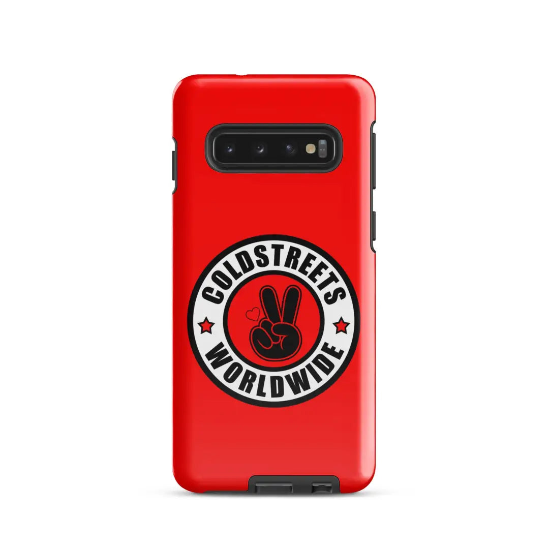 Red phone case for Samsung Galaxy S20, S21, S22 with Coldstreet Worldwide logo